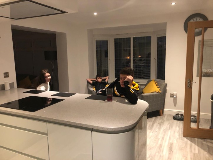 When I became a parent, I fully expected I would teach my children to do many things: walk, use a potty (not walk with a potty on head à la Joel), ride a bike, tie shoelaces. There are lessons I’ve failed at: be nice to your sister, be nice to your brother, don’t wind your dad up, stop embarrassing me in public (Joel). But today’s lesson, I wasn’t expecting. Today’s learning objective was to shut a cupboard door correctly. I really didn’t think these doors through when I purchased the new kitchen. Light and glossy. Prime….. for finger prints. So we had a lesson today on how to shut the doors so I don’t have to spend my Saturday morning cleaning them, when I could be lying on the sofa, watching old episodes of the Goldbergs (their family makes me feel better) and eating crisps with my fingers arranged like chopsticks.